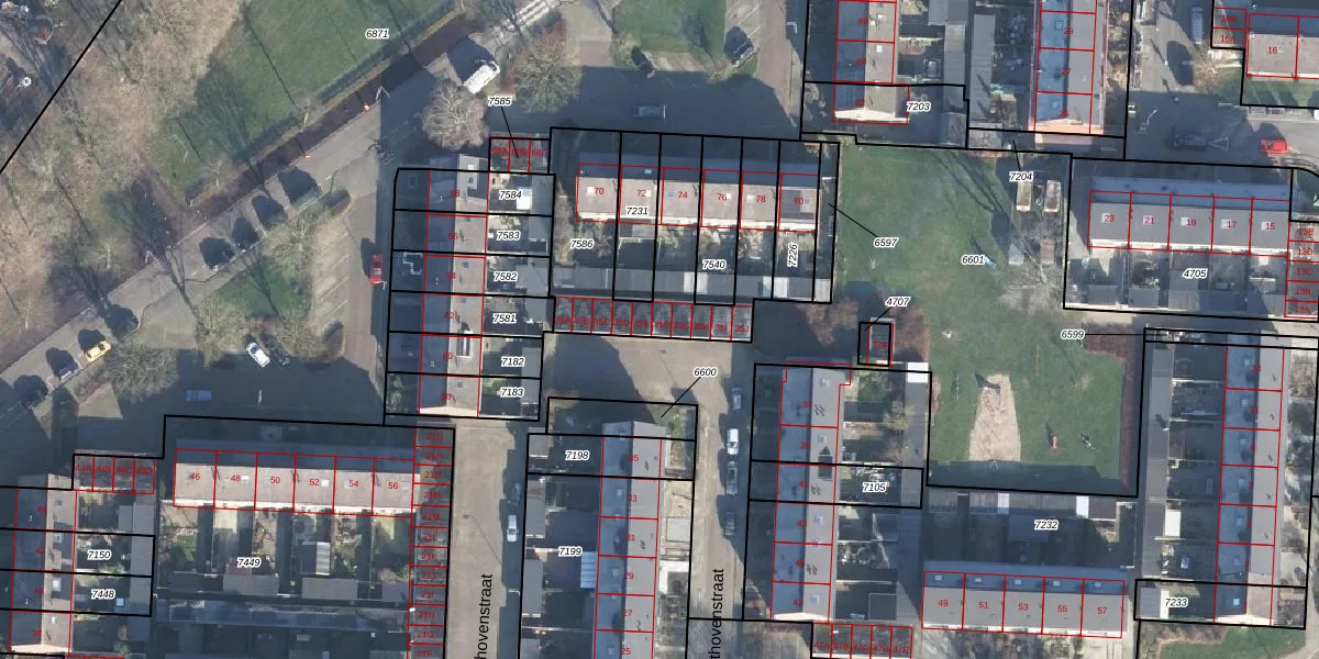 Het perceel waarop Beethovenstraat 35-F staat heeft een oppervlakte van 720 m². Dit is een groot perceel. De perceeloppervlakte wordt geregistreerd door het Kadaster. Gedetailleerde informatie over de maten van dit perceel kunt u vinden in het rapport Kadastrale kaart met maatvoering van Beethovenstraat 35-F.