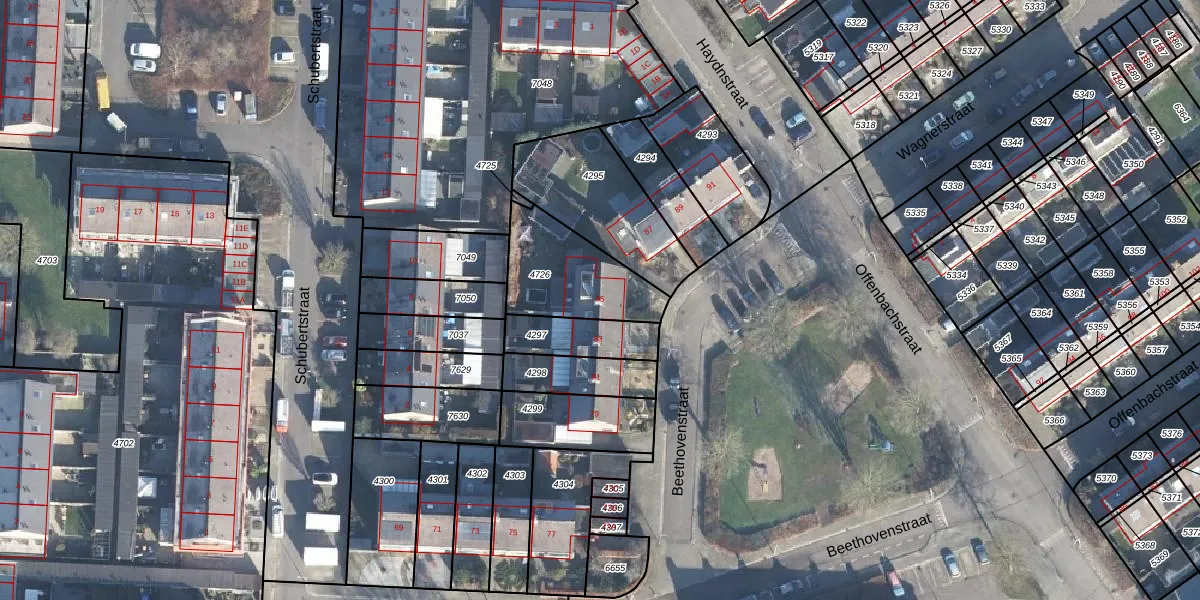 Het perceel waarop Beethovenstraat 85 staat heeft een oppervlakte van 337 m². Dit is een groot perceel. De perceeloppervlakte wordt geregistreerd door het Kadaster. Gedetailleerde informatie over de maten van dit perceel kunt u vinden in het rapport Kadastrale kaart met maatvoering van Beethovenstraat 85.
