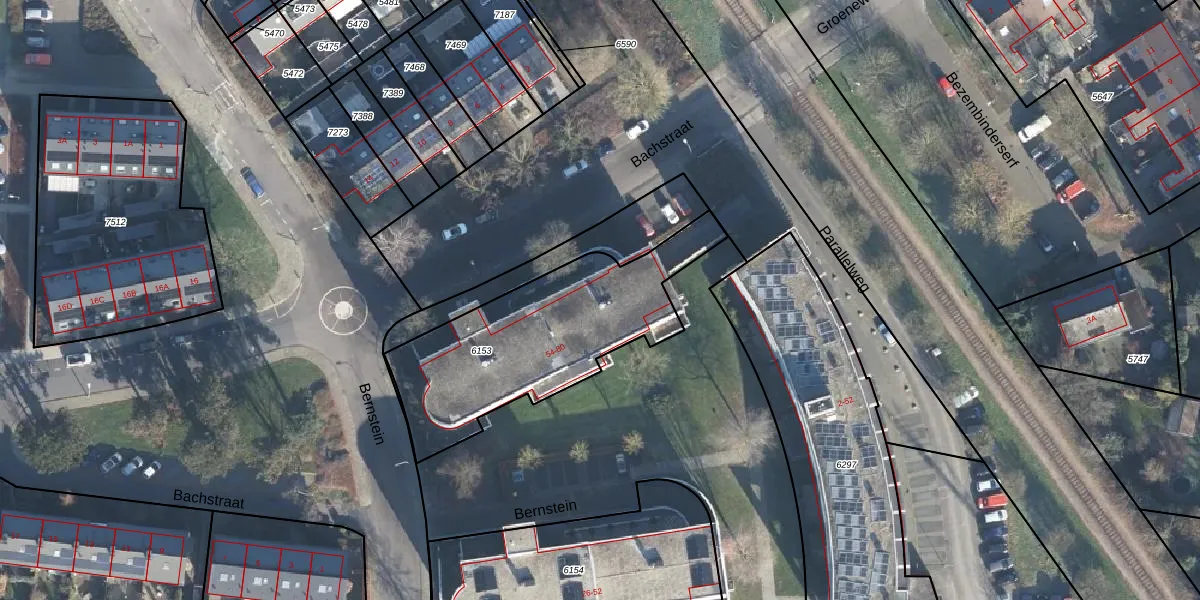 Het perceel waarop Bernstein 70 staat heeft een oppervlakte van 895 m². Dit is een groot perceel. De perceeloppervlakte wordt geregistreerd door het Kadaster. Gedetailleerde informatie over de maten van dit perceel kunt u vinden in het rapport Kadastrale kaart met maatvoering van Bernstein 70.
