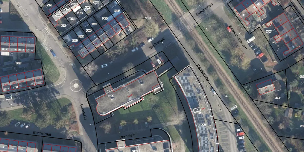 Het perceel waarop Bernstein 80 staat heeft een oppervlakte van 895 m². Dit is een groot perceel. De perceeloppervlakte wordt geregistreerd door het Kadaster. Gedetailleerde informatie over de maten van dit perceel kunt u vinden in het rapport Kadastrale kaart met maatvoering van Bernstein 80.