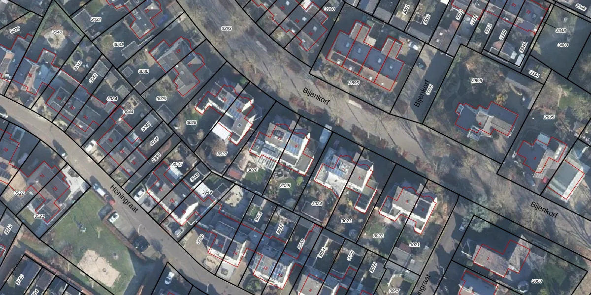 Het perceel waarop Bijenkorf 9 staat heeft een oppervlakte van 366 m². Dit is een groot perceel. De perceeloppervlakte wordt geregistreerd door het Kadaster. Gedetailleerde informatie over de maten van dit perceel kunt u vinden in het rapport Kadastrale kaart met maatvoering van Bijenkorf 9.