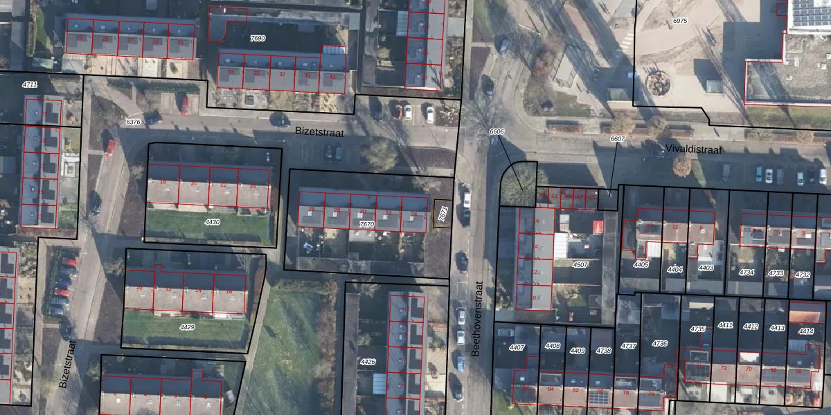 Het perceel waarop Bizetstraat 34 staat heeft een oppervlakte van 945 m². Dit is een groot perceel. De perceeloppervlakte wordt geregistreerd door het Kadaster. Gedetailleerde informatie over de maten van dit perceel kunt u vinden in het rapport Kadastrale kaart met maatvoering van Bizetstraat 34.