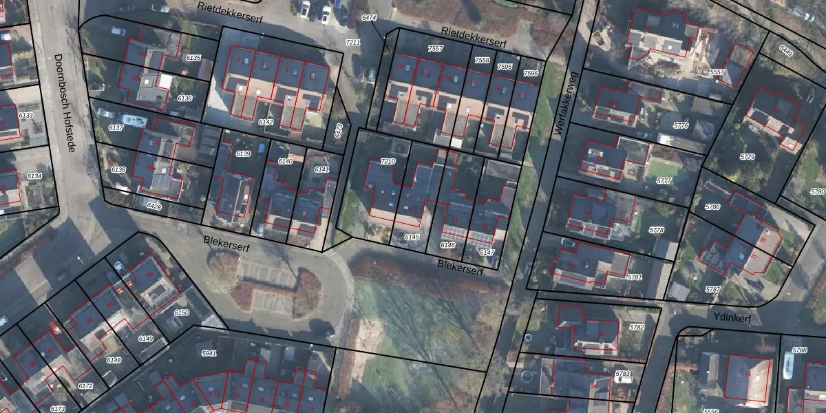 Gebruik de zoekbalk of klik op een perceel voor informatie over de adressen binnen dit perceel.