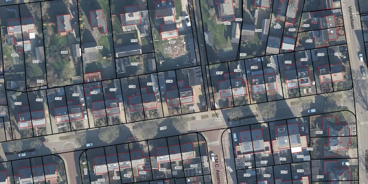 Het perceel waarop Boerhaavelaan 100 staat heeft een oppervlakte van 351 m². Dit is een groot perceel. De perceeloppervlakte wordt geregistreerd door het Kadaster. Gedetailleerde informatie over de maten van dit perceel kunt u vinden in het rapport Kadastrale kaart met maatvoering van Boerhaavelaan 100.