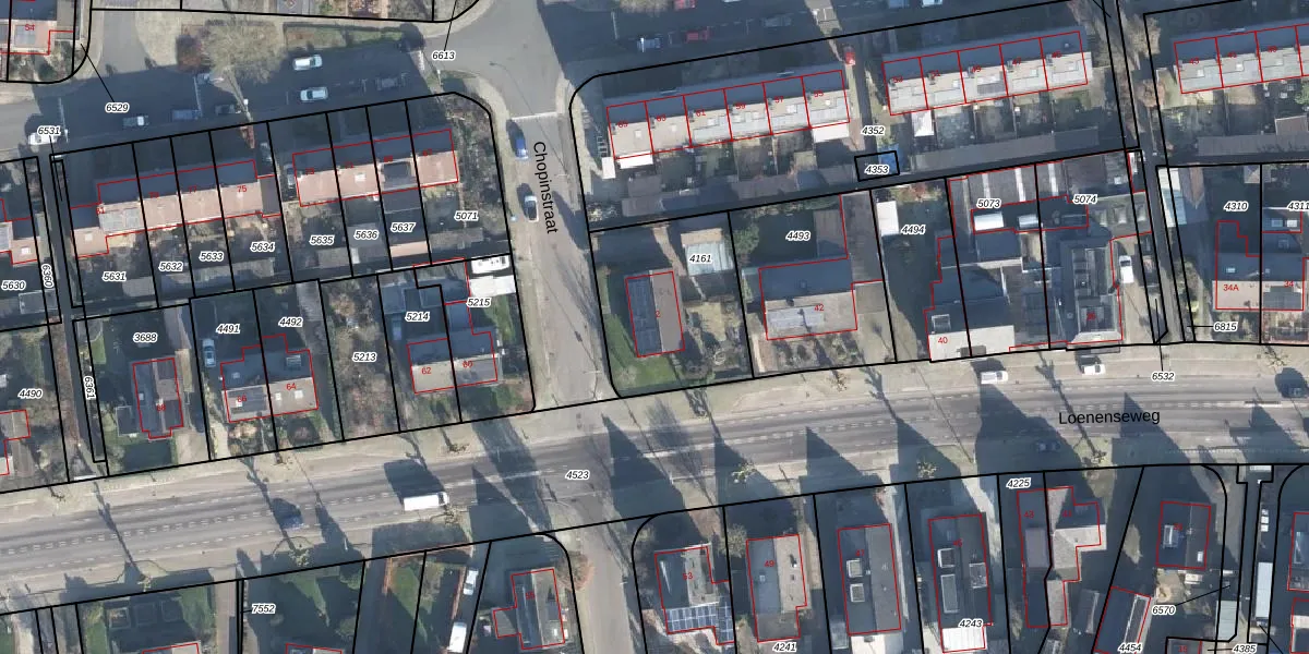 Gebruik de zoekbalk of klik op een perceel voor informatie over de adressen binnen dit perceel.