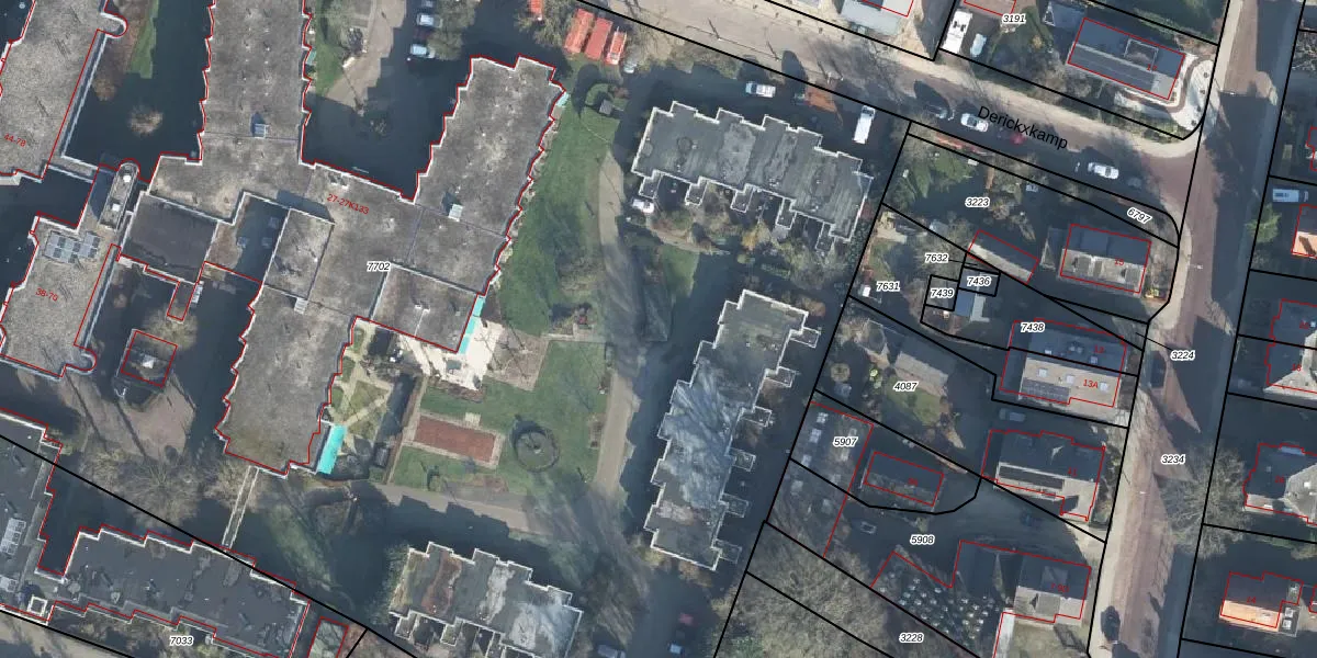 Het perceel waarop Derickxkamp 1-K-20 staat heeft een oppervlakte van 1,4 ha. Dit is een zeer groot perceel. De perceeloppervlakte wordt geregistreerd door het Kadaster. Gedetailleerde informatie over de maten van dit perceel kunt u vinden in het rapport Kadastrale kaart met maatvoering van Derickxkamp 1-K-20.