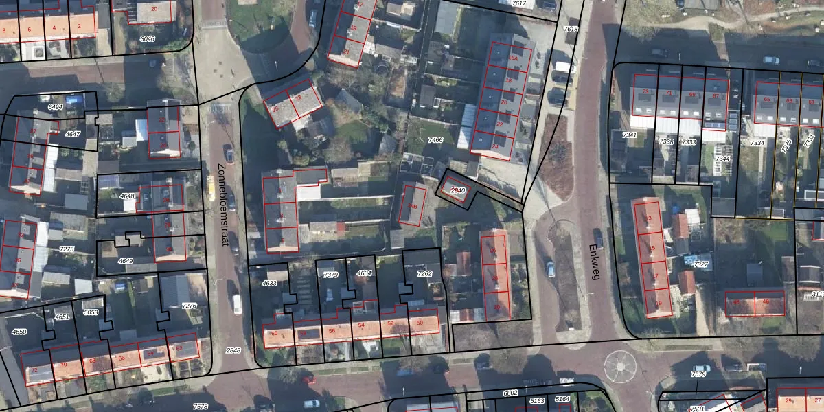 Het perceel waarop Enkweg 24-B staat heeft een oppervlakte van 4818 m². Dit is een zeer groot perceel. De perceeloppervlakte wordt geregistreerd door het Kadaster. Gedetailleerde informatie over de maten van dit perceel kunt u vinden in het rapport Kadastrale kaart met maatvoering van Enkweg 24-B.