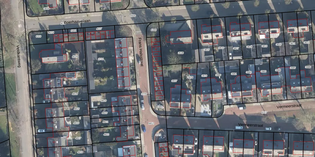 Het perceel waarop Frans Halsstraat 20 staat heeft een oppervlakte van 345 m². Dit is een groot perceel. De perceeloppervlakte wordt geregistreerd door het Kadaster. Gedetailleerde informatie over de maten van dit perceel kunt u vinden in het rapport Kadastrale kaart met maatvoering van Frans Halsstraat 20.