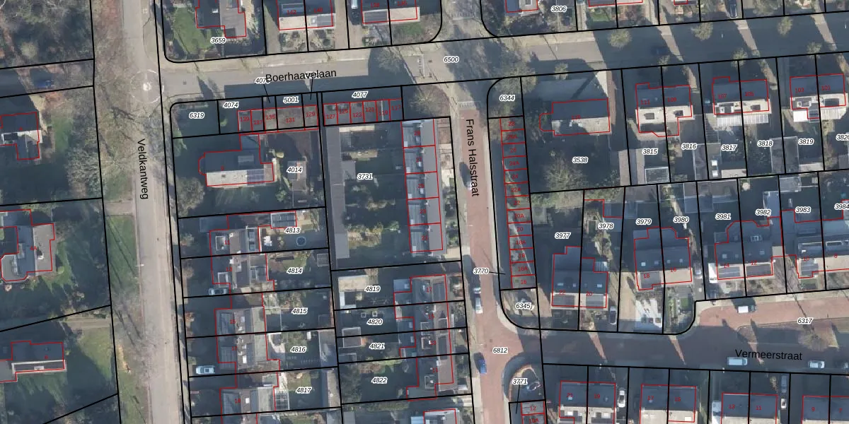 Het perceel waarop Frans Halsstraat 23 staat heeft een oppervlakte van 1053 m². Dit is een zeer groot perceel. De perceeloppervlakte wordt geregistreerd door het Kadaster. Gedetailleerde informatie over de maten van dit perceel kunt u vinden in het rapport Kadastrale kaart met maatvoering van Frans Halsstraat 23.