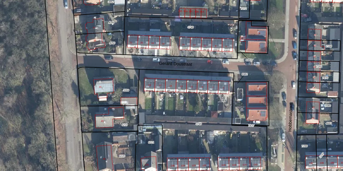 Het perceel waarop Gerard Doustraat 15 staat heeft een oppervlakte van 3649 m². Dit is een zeer groot perceel. De perceeloppervlakte wordt geregistreerd door het Kadaster. Gedetailleerde informatie over de maten van dit perceel kunt u vinden in het rapport Kadastrale kaart met maatvoering van Gerard Doustraat 15.