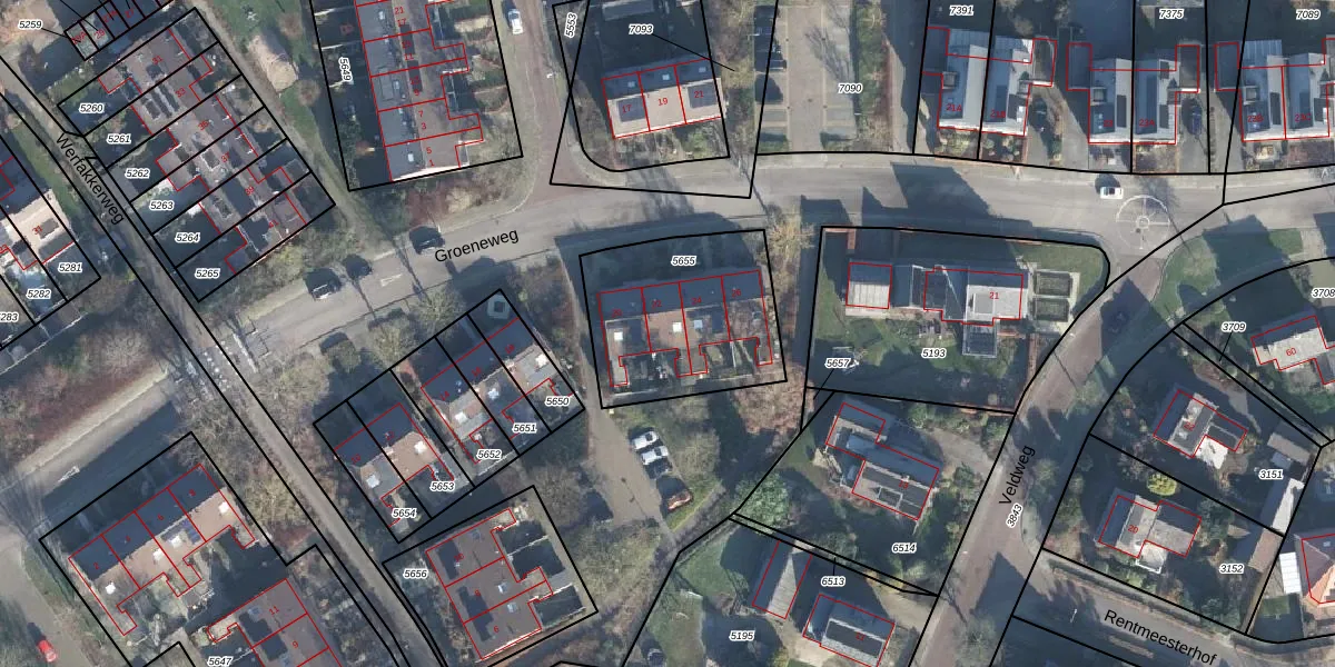 Het perceel waarop Groeneweg 22 staat heeft een oppervlakte van 660 m². Dit is een groot perceel. De perceeloppervlakte wordt geregistreerd door het Kadaster. Gedetailleerde informatie over de maten van dit perceel kunt u vinden in het rapport Kadastrale kaart met maatvoering van Groeneweg 22.