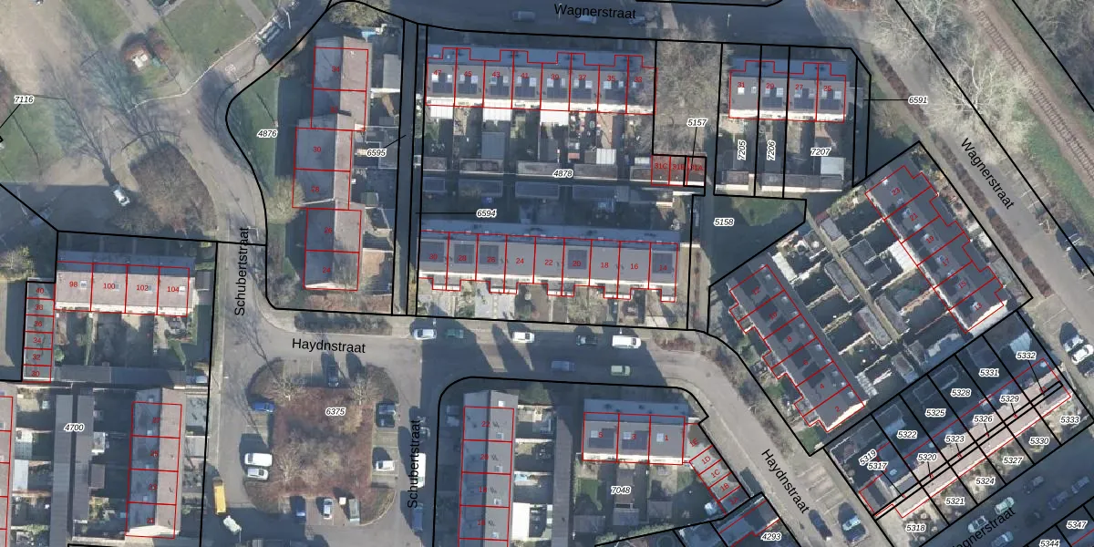 Het perceel waarop Haydnstraat 22 staat heeft een oppervlakte van 2440 m². Dit is een zeer groot perceel. De perceeloppervlakte wordt geregistreerd door het Kadaster. Gedetailleerde informatie over de maten van dit perceel kunt u vinden in het rapport Kadastrale kaart met maatvoering van Haydnstraat 22.