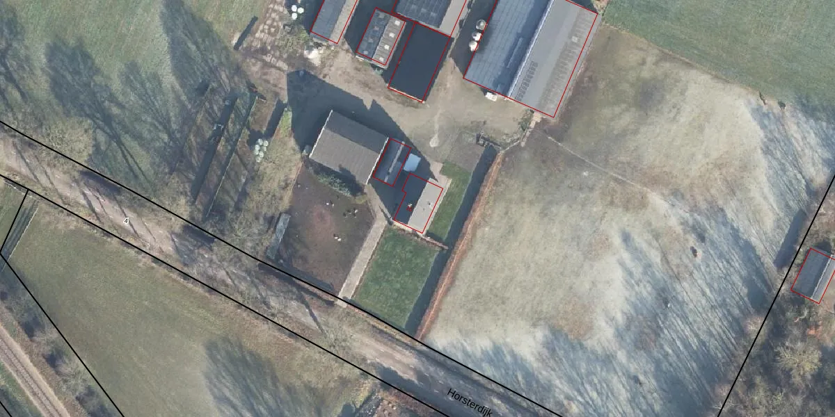 Het perceel waarop Horsterdijk 10 staat heeft een oppervlakte van 9,5 ha. Dit is een zeer groot perceel. De perceeloppervlakte wordt geregistreerd door het Kadaster. Gedetailleerde informatie over de maten van dit perceel kunt u vinden in het rapport Kadastrale kaart met maatvoering van Horsterdijk 10.