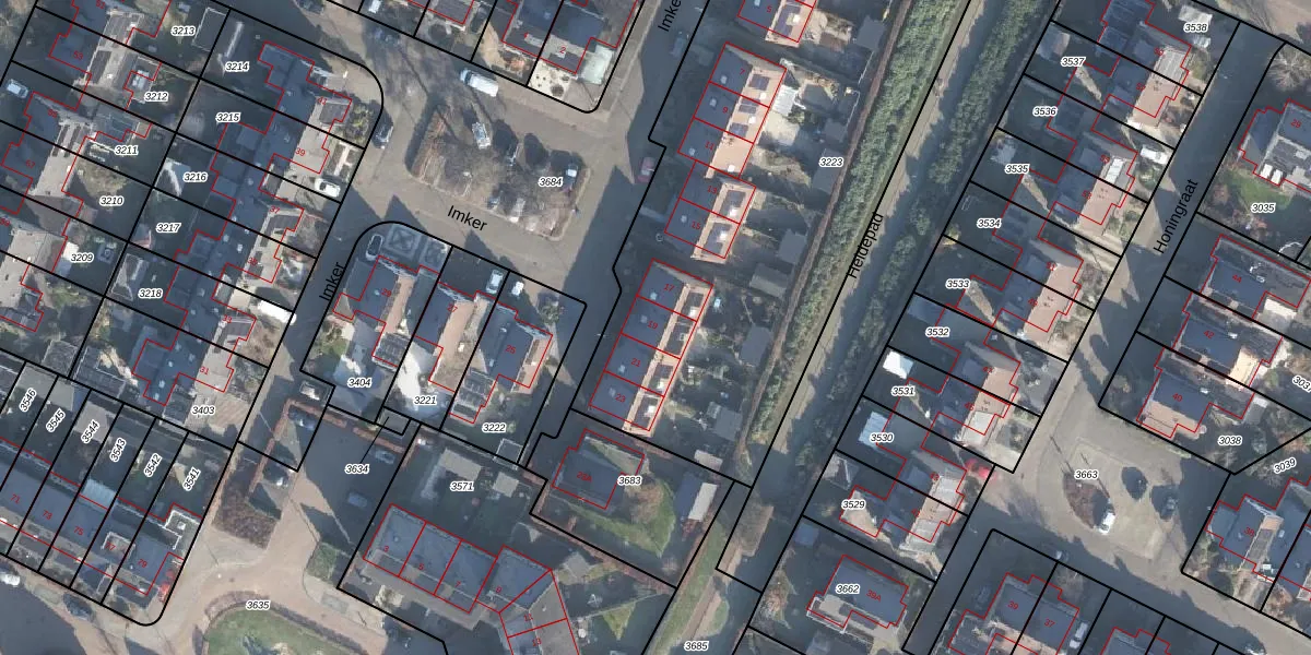 Het perceel waarop Imker 19 staat heeft een oppervlakte van 3266 m². Dit is een zeer groot perceel. De perceeloppervlakte wordt geregistreerd door het Kadaster. Gedetailleerde informatie over de maten van dit perceel kunt u vinden in het rapport Kadastrale kaart met maatvoering van Imker 19.