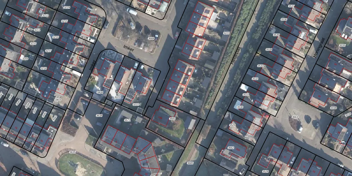 Het perceel waarop Imker 21 staat heeft een oppervlakte van 3266 m². Dit is een zeer groot perceel. De perceeloppervlakte wordt geregistreerd door het Kadaster. Gedetailleerde informatie over de maten van dit perceel kunt u vinden in het rapport Kadastrale kaart met maatvoering van Imker 21.
