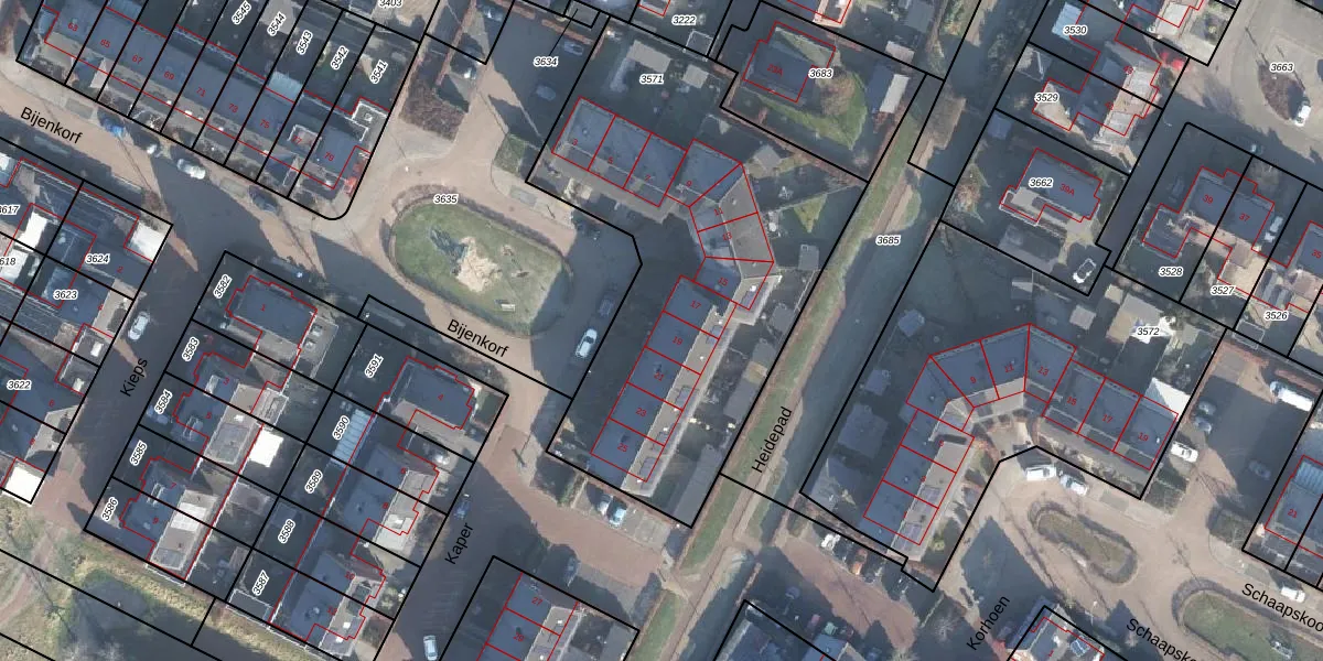Het perceel waarop Kaper 19 staat heeft een oppervlakte van 2115 m². Dit is een zeer groot perceel. De perceeloppervlakte wordt geregistreerd door het Kadaster. Gedetailleerde informatie over de maten van dit perceel kunt u vinden in het rapport Kadastrale kaart met maatvoering van Kaper 19.