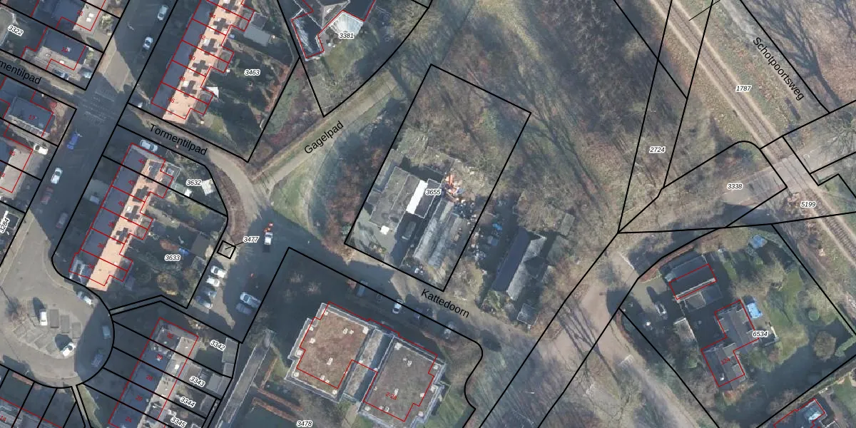 Het perceel waarop Kattedoorn 8 staat heeft een oppervlakte van 1200 m². Dit is een zeer groot perceel. De perceeloppervlakte wordt geregistreerd door het Kadaster. Gedetailleerde informatie over de maten van dit perceel kunt u vinden in het rapport Kadastrale kaart met maatvoering van Kattedoorn 8.