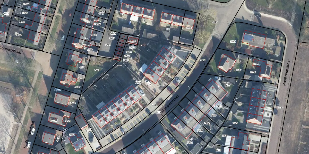 Het perceel waarop Kloosterstraat 48 staat heeft een oppervlakte van 3490 m². Dit is een zeer groot perceel. De perceeloppervlakte wordt geregistreerd door het Kadaster. Gedetailleerde informatie over de maten van dit perceel kunt u vinden in het rapport Kadastrale kaart met maatvoering van Kloosterstraat 48.