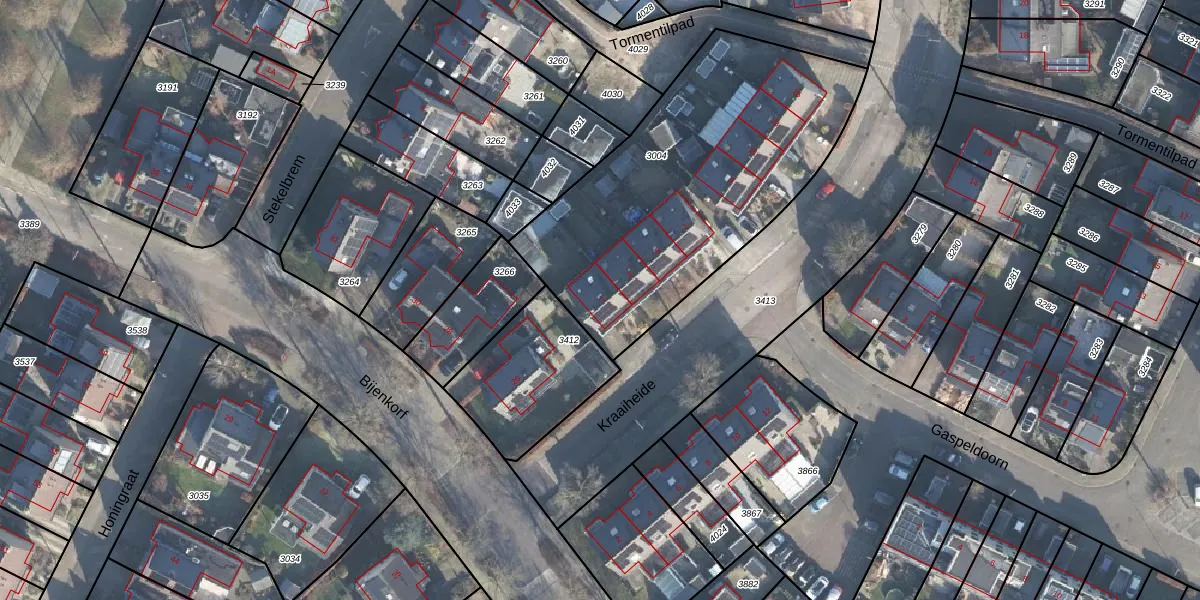 Kraaiheide 1 is gelegen op kadastraal perceel HAL00C3004. Deze kadastrale aanduiding is uniek en wordt gebruikt door het Kadaster om eigendomsrechten en andere zakelijke rechten vast te leggen. Het perceel maakt onderdeel uit van de kadastrale gemeente Hall.