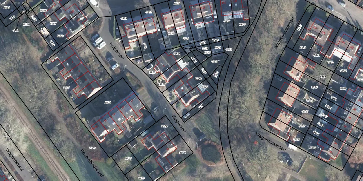 Het perceel waarop Kuiperserf 5 staat heeft een oppervlakte van 206 m². Dit is een middelgroot perceel. De perceeloppervlakte wordt geregistreerd door het Kadaster. Gedetailleerde informatie over de maten van dit perceel kunt u vinden in het rapport Kadastrale kaart met maatvoering van Kuiperserf 5.