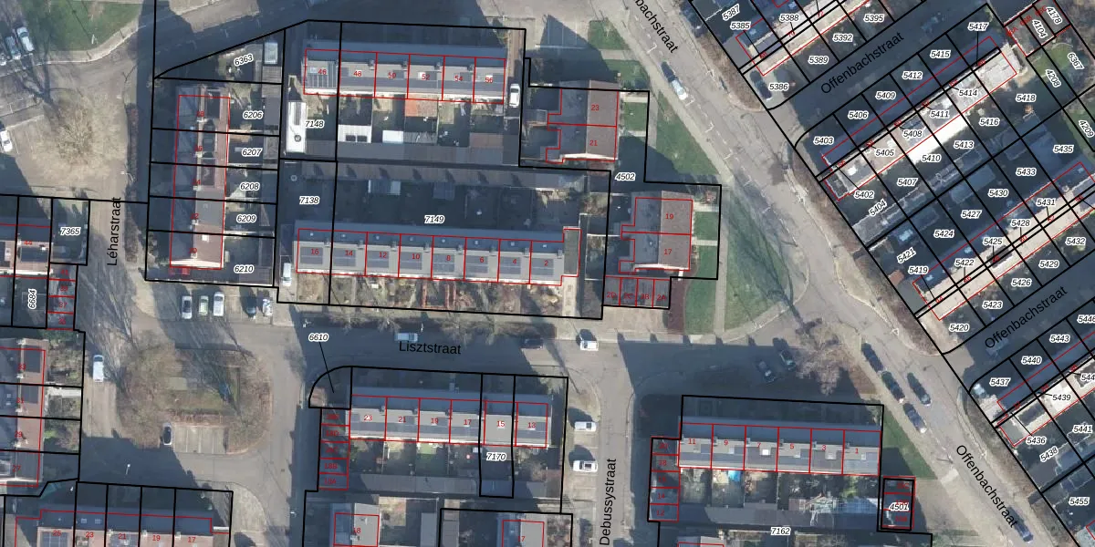 Het perceel waarop Lisztstraat 2 staat heeft een oppervlakte van 2205 m². Dit is een zeer groot perceel. De perceeloppervlakte wordt geregistreerd door het Kadaster. Gedetailleerde informatie over de maten van dit perceel kunt u vinden in het rapport Kadastrale kaart met maatvoering van Lisztstraat 2.