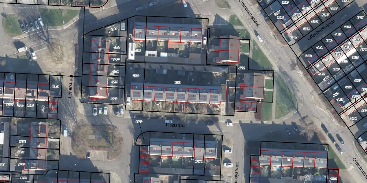 Het perceel waarop Lisztstraat 8 staat heeft een oppervlakte van 2205 m². Dit is een zeer groot perceel. De perceeloppervlakte wordt geregistreerd door het Kadaster. Gedetailleerde informatie over de maten van dit perceel kunt u vinden in het rapport Kadastrale kaart met maatvoering van Lisztstraat 8.