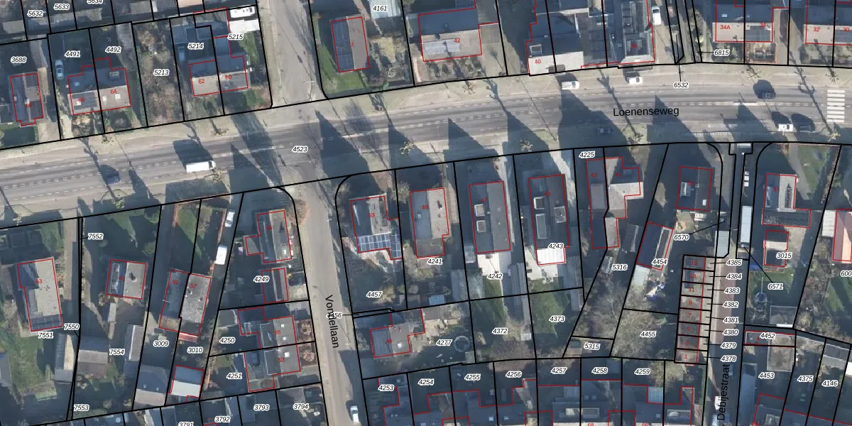 Gebruik de zoekbalk of klik op een perceel voor informatie over de adressen binnen dit perceel.