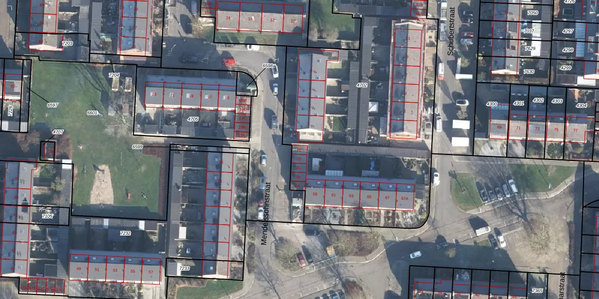 Het perceel waarop Mendelssohnstraat 2-E staat heeft een oppervlakte van 3815 m². Dit is een zeer groot perceel. De perceeloppervlakte wordt geregistreerd door het Kadaster. Gedetailleerde informatie over de maten van dit perceel kunt u vinden in het rapport Kadastrale kaart met maatvoering van Mendelssohnstraat 2-E.