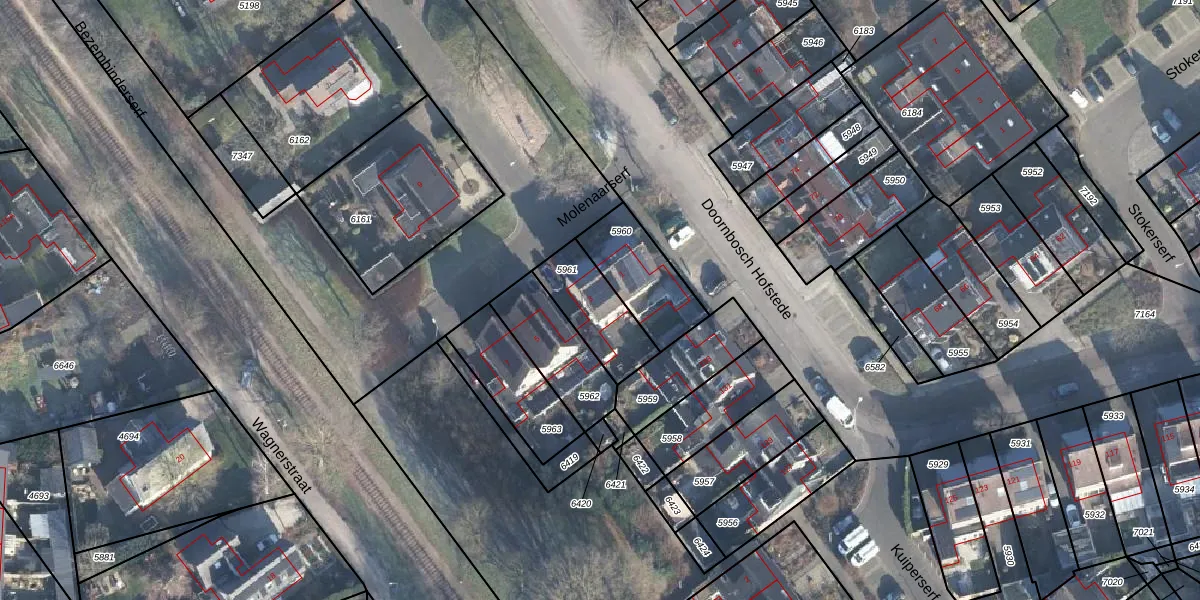 Gebruik de zoekbalk of klik op een perceel voor informatie over de adressen binnen dit perceel.