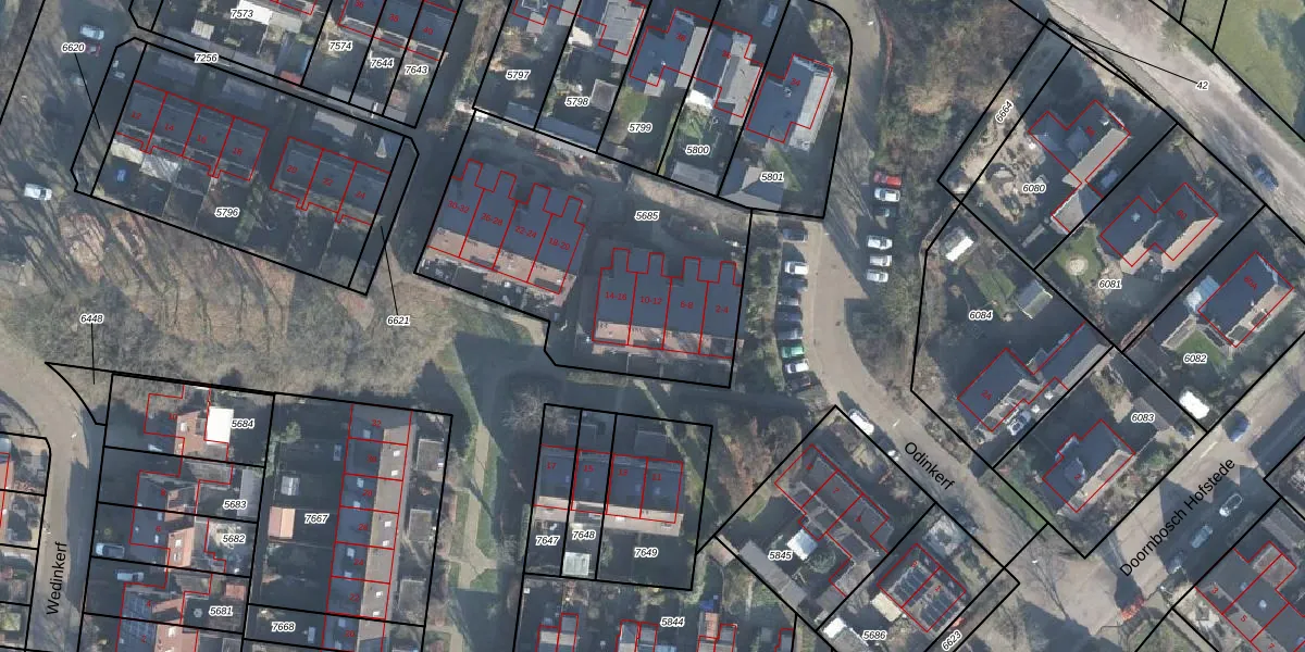 Het perceel waarop Odinkerf 10 staat heeft een oppervlakte van 1384 m². Dit is een zeer groot perceel. De perceeloppervlakte wordt geregistreerd door het Kadaster. Gedetailleerde informatie over de maten van dit perceel kunt u vinden in het rapport Kadastrale kaart met maatvoering van Odinkerf 10.