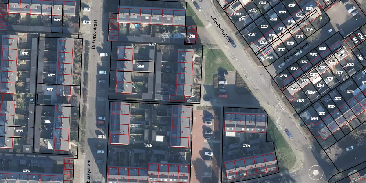 Offenbachstraat 9 is gelegen op kadastraal perceel HAL00E7162. Deze kadastrale aanduiding is uniek en wordt gebruikt door het Kadaster om eigendomsrechten en andere zakelijke rechten vast te leggen. Het perceel maakt onderdeel uit van de kadastrale gemeente Hall.