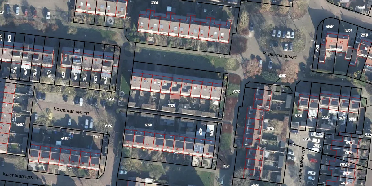 Het perceel waarop Papiermakerserf 77 staat heeft een oppervlakte van 1226 m². Dit is een zeer groot perceel. De perceeloppervlakte wordt geregistreerd door het Kadaster. Gedetailleerde informatie over de maten van dit perceel kunt u vinden in het rapport Kadastrale kaart met maatvoering van Papiermakerserf 77.