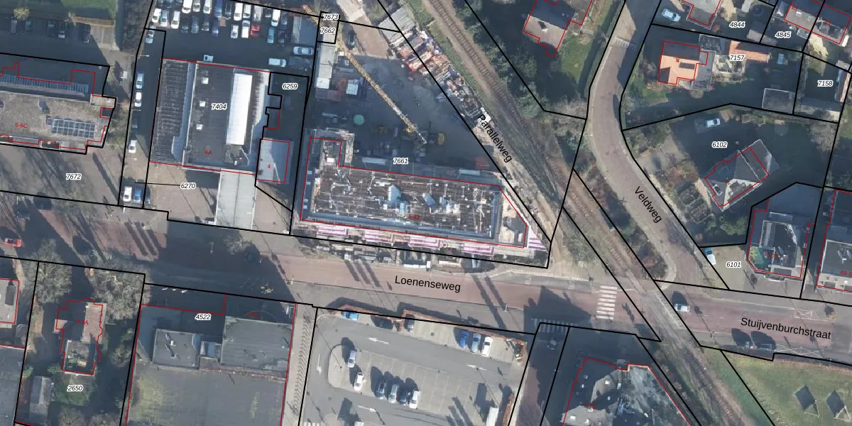 Het perceel waarop Parallelweg 13 staat heeft een oppervlakte van 2150 m². Dit is een zeer groot perceel. De perceeloppervlakte wordt geregistreerd door het Kadaster. Gedetailleerde informatie over de maten van dit perceel kunt u vinden in het rapport Kadastrale kaart met maatvoering van Parallelweg 13.