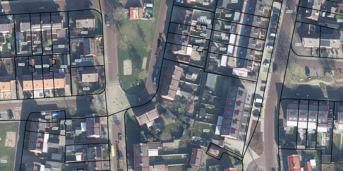 Het perceel waarop Rozenstraat 19 staat heeft een oppervlakte van 4818 m². Dit is een zeer groot perceel. De perceeloppervlakte wordt geregistreerd door het Kadaster. Gedetailleerde informatie over de maten van dit perceel kunt u vinden in het rapport Kadastrale kaart met maatvoering van Rozenstraat 19.