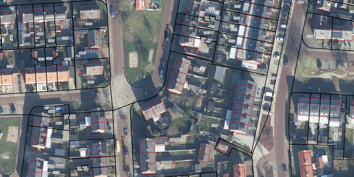 Het perceel waarop Rozenstraat 21 staat heeft een oppervlakte van 4818 m². Dit is een zeer groot perceel. De perceeloppervlakte wordt geregistreerd door het Kadaster. Gedetailleerde informatie over de maten van dit perceel kunt u vinden in het rapport Kadastrale kaart met maatvoering van Rozenstraat 21.
