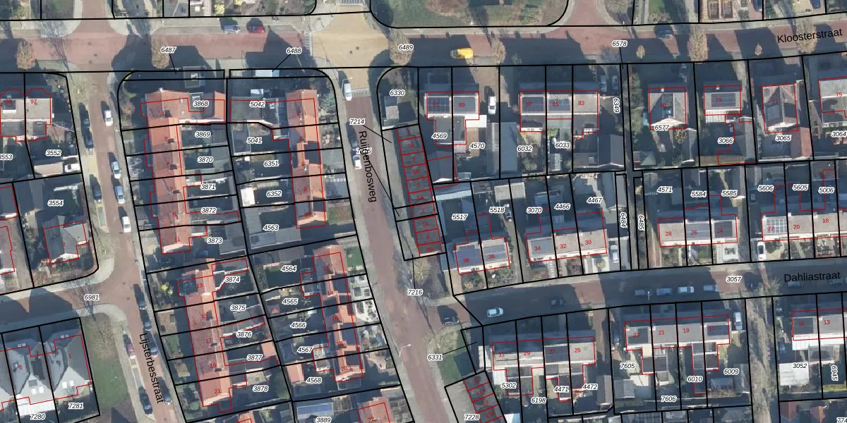 Het perceel waarop Ruijgenbosweg 7 staat heeft een oppervlakte van 30 m². Dit is een klein perceel. De perceeloppervlakte wordt geregistreerd door het Kadaster. Gedetailleerde informatie over de maten van dit perceel kunt u vinden in het rapport Kadastrale kaart met maatvoering van Ruijgenbosweg 7.