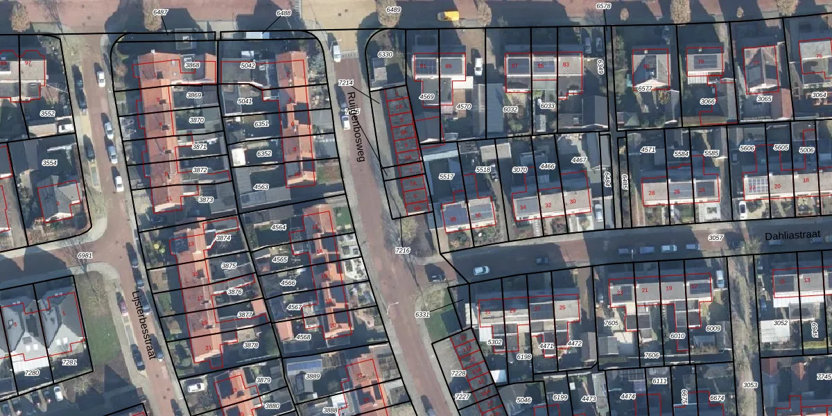 Het perceel waarop Ruijgenbosweg 9-A staat heeft een oppervlakte van 95 m². Dit is een klein perceel. De perceeloppervlakte wordt geregistreerd door het Kadaster. Gedetailleerde informatie over de maten van dit perceel kunt u vinden in het rapport Kadastrale kaart met maatvoering van Ruijgenbosweg 9-A.