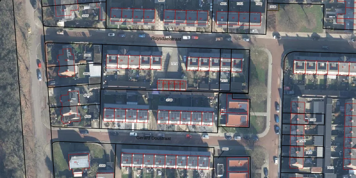 Het perceel waarop Ruysdaelstraat 21-B staat heeft een oppervlakte van 1900 m². Dit is een zeer groot perceel. De perceeloppervlakte wordt geregistreerd door het Kadaster. Gedetailleerde informatie over de maten van dit perceel kunt u vinden in het rapport Kadastrale kaart met maatvoering van Ruysdaelstraat 21-B.