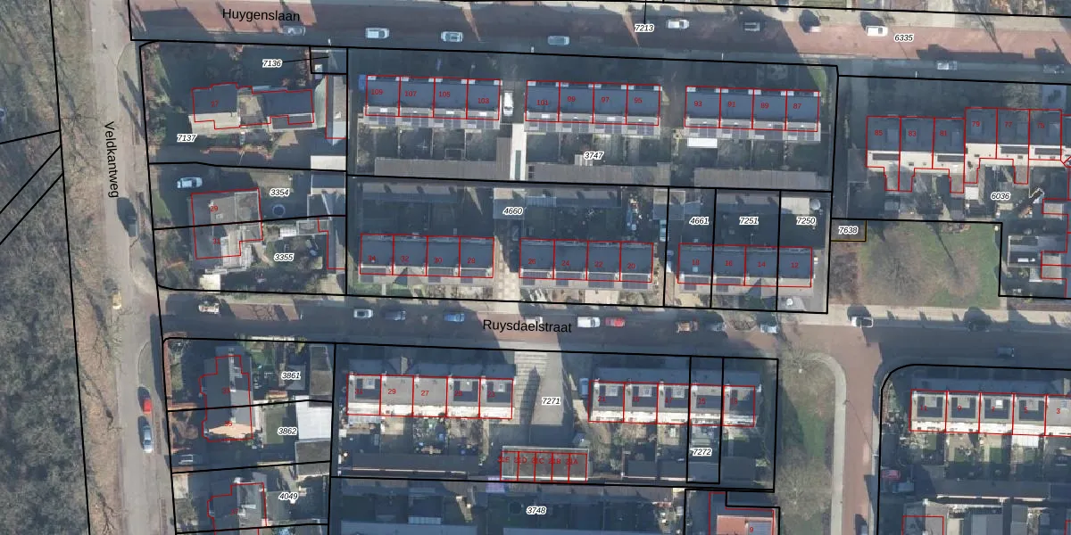 Het perceel waarop Ruysdaelstraat 26 staat heeft een oppervlakte van 1346 m². Dit is een zeer groot perceel. De perceeloppervlakte wordt geregistreerd door het Kadaster. Gedetailleerde informatie over de maten van dit perceel kunt u vinden in het rapport Kadastrale kaart met maatvoering van Ruysdaelstraat 26.
