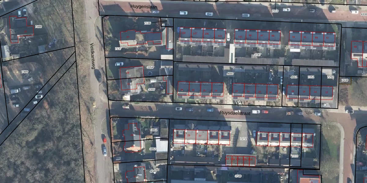 Het perceel waarop Ruysdaelstraat 34 staat heeft een oppervlakte van 1346 m². Dit is een zeer groot perceel. De perceeloppervlakte wordt geregistreerd door het Kadaster. Gedetailleerde informatie over de maten van dit perceel kunt u vinden in het rapport Kadastrale kaart met maatvoering van Ruysdaelstraat 34.