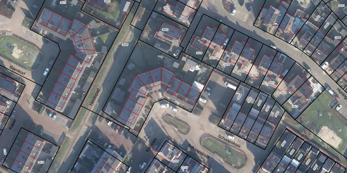 Schaapskooi 15 is gelegen op kadastraal perceel HAL00C3572. Deze kadastrale aanduiding is uniek en wordt gebruikt door het Kadaster om eigendomsrechten en andere zakelijke rechten vast te leggen. Het perceel maakt onderdeel uit van de kadastrale gemeente Hall.