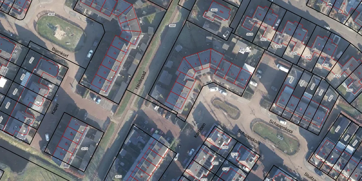 Het perceel waarop Schaapskooi 3 staat heeft een oppervlakte van 1865 m². Dit is een zeer groot perceel. De perceeloppervlakte wordt geregistreerd door het Kadaster. Gedetailleerde informatie over de maten van dit perceel kunt u vinden in het rapport Kadastrale kaart met maatvoering van Schaapskooi 3.