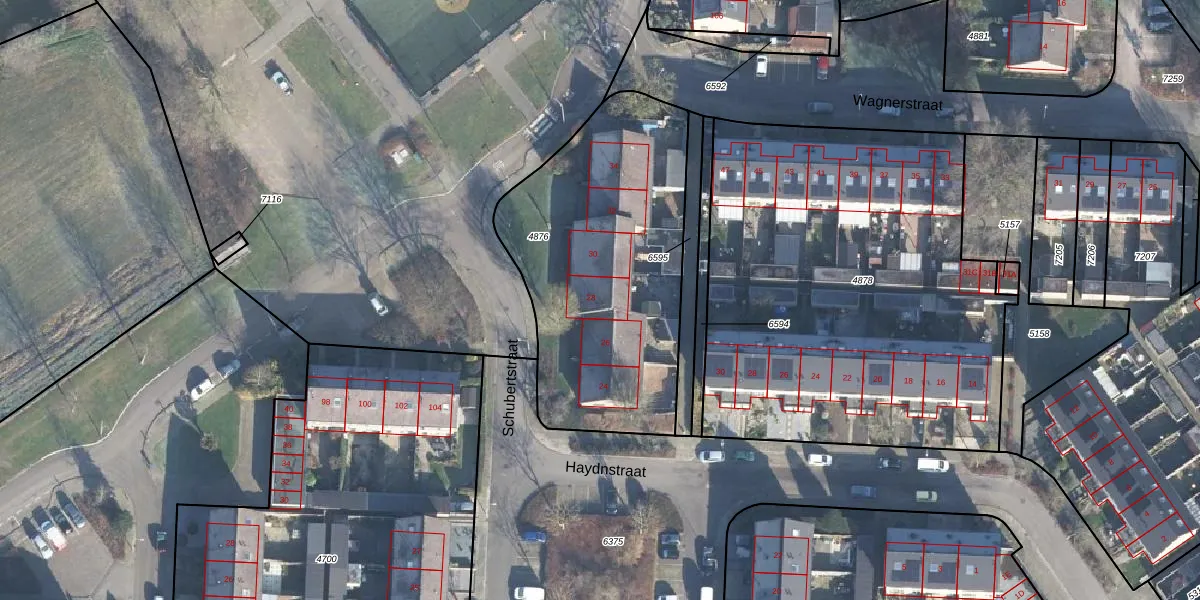Het perceel waarop Schubertstraat 28 staat heeft een oppervlakte van 1360 m². Dit is een zeer groot perceel. De perceeloppervlakte wordt geregistreerd door het Kadaster. Gedetailleerde informatie over de maten van dit perceel kunt u vinden in het rapport Kadastrale kaart met maatvoering van Schubertstraat 28.