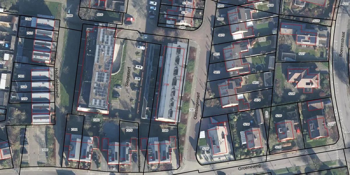 Het perceel waarop Sleperserf 20 staat heeft een oppervlakte van 1375 m². Dit is een zeer groot perceel. De perceeloppervlakte wordt geregistreerd door het Kadaster. Gedetailleerde informatie over de maten van dit perceel kunt u vinden in het rapport Kadastrale kaart met maatvoering van Sleperserf 20.