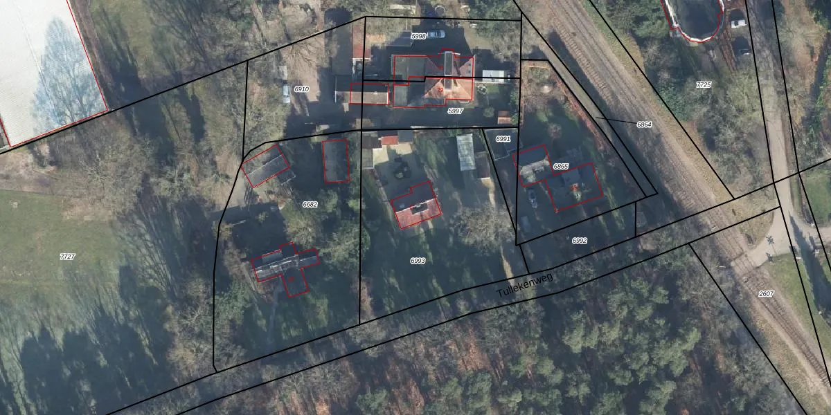 Het perceel waarop Tullekenweg 27 staat heeft een oppervlakte van 1450 m². Dit is een zeer groot perceel. De perceeloppervlakte wordt geregistreerd door het Kadaster. Gedetailleerde informatie over de maten van dit perceel kunt u vinden in het rapport Kadastrale kaart met maatvoering van Tullekenweg 27.