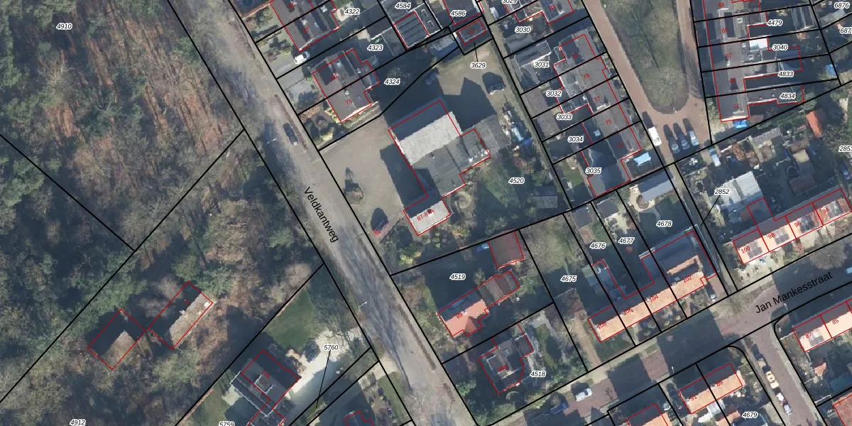 Veldkantweg 87-A is gelegen op kadastraal perceel HAL00E4520. Deze kadastrale aanduiding is uniek en wordt gebruikt door het Kadaster om eigendomsrechten en andere zakelijke rechten vast te leggen. Het perceel maakt onderdeel uit van de kadastrale gemeente Hall.