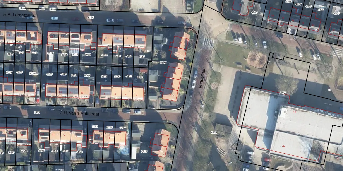 Het perceel waarop Vondellaan 11 staat heeft een oppervlakte van 1142 m². Dit is een zeer groot perceel. De perceeloppervlakte wordt geregistreerd door het Kadaster. Gedetailleerde informatie over de maten van dit perceel kunt u vinden in het rapport Kadastrale kaart met maatvoering van Vondellaan 11.