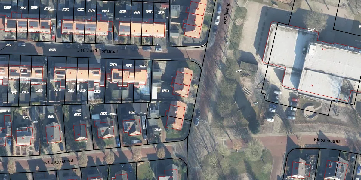 Het perceel waarop Vondellaan 5 staat heeft een oppervlakte van 825 m². Dit is een groot perceel. De perceeloppervlakte wordt geregistreerd door het Kadaster. Gedetailleerde informatie over de maten van dit perceel kunt u vinden in het rapport Kadastrale kaart met maatvoering van Vondellaan 5.