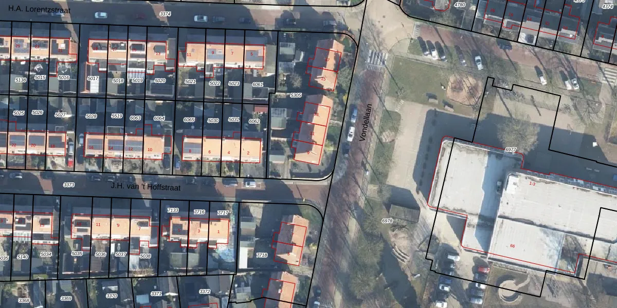 Vondellaan 9 is gelegen op kadastraal perceel HAL00E5305. Deze kadastrale aanduiding is uniek en wordt gebruikt door het Kadaster om eigendomsrechten en andere zakelijke rechten vast te leggen. Het perceel maakt onderdeel uit van de kadastrale gemeente Hall.