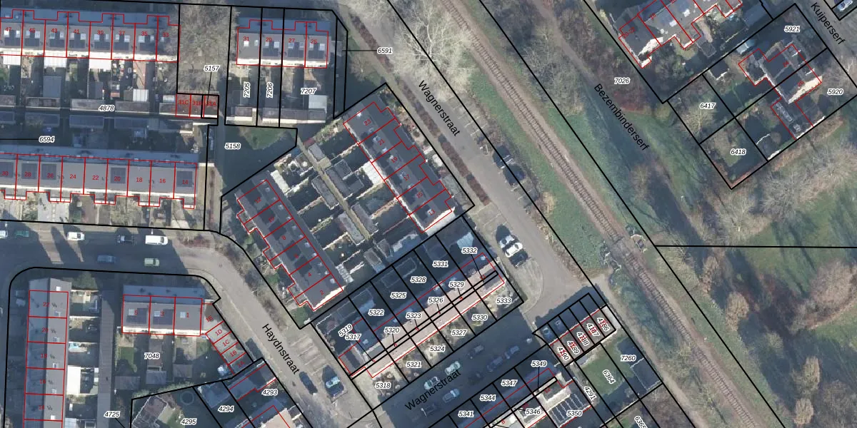 Het perceel waarop Wagnerstraat 13 staat heeft een oppervlakte van 2150 m². Dit is een zeer groot perceel. De perceeloppervlakte wordt geregistreerd door het Kadaster. Gedetailleerde informatie over de maten van dit perceel kunt u vinden in het rapport Kadastrale kaart met maatvoering van Wagnerstraat 13.